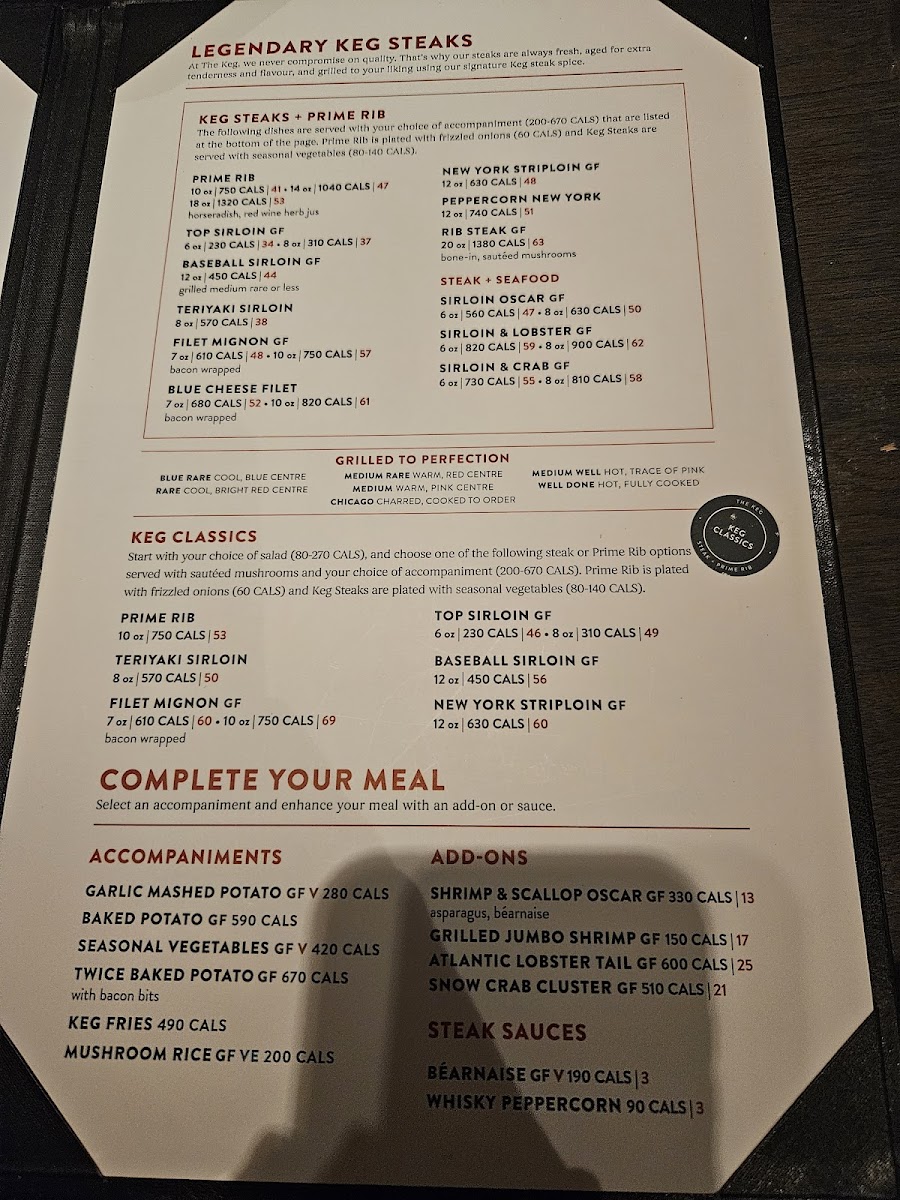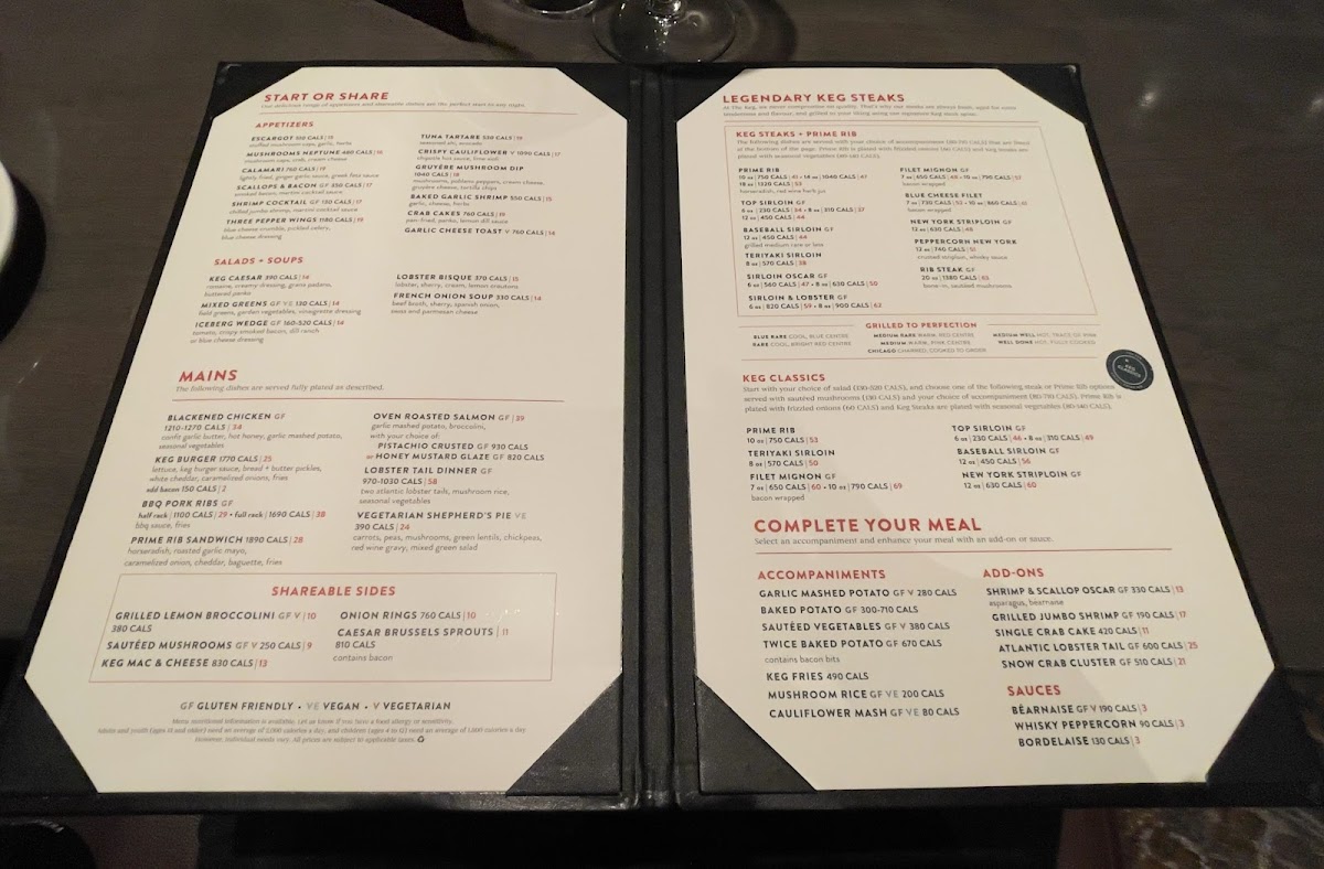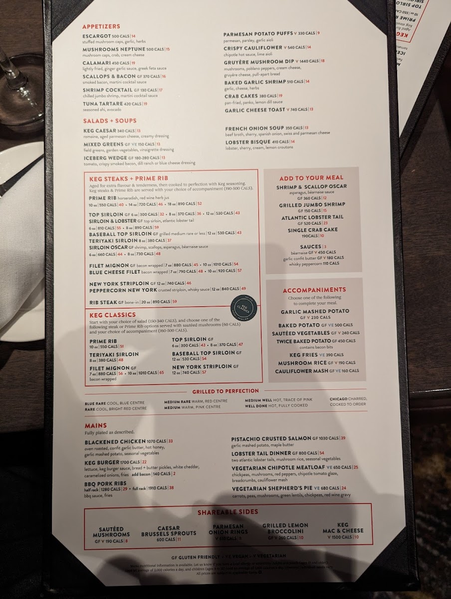 The Keg Steakhouse + Bar - Oshawa Menu