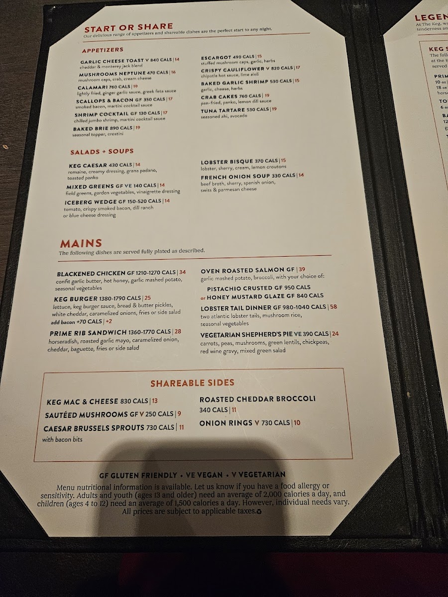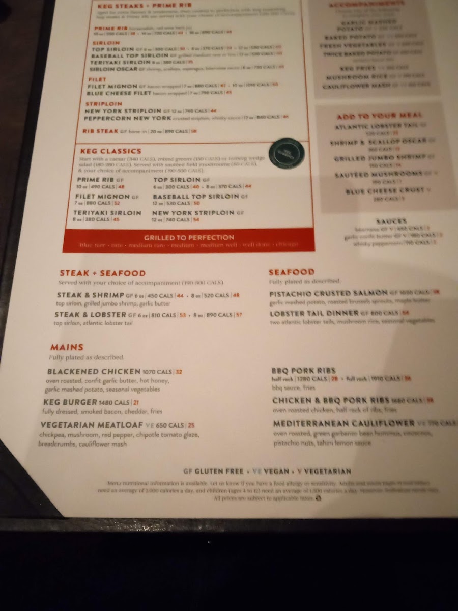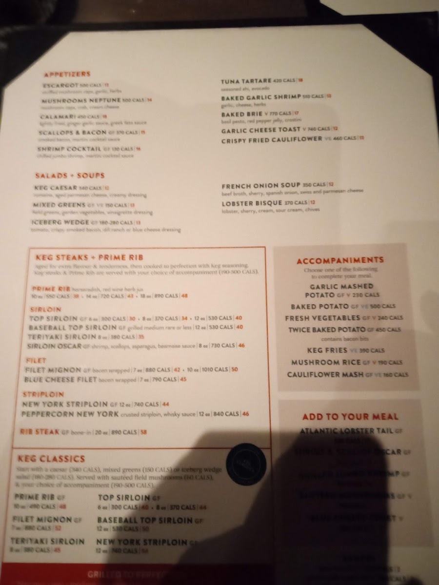 The Keg Steakhouse + Bar - Oshawa Menu